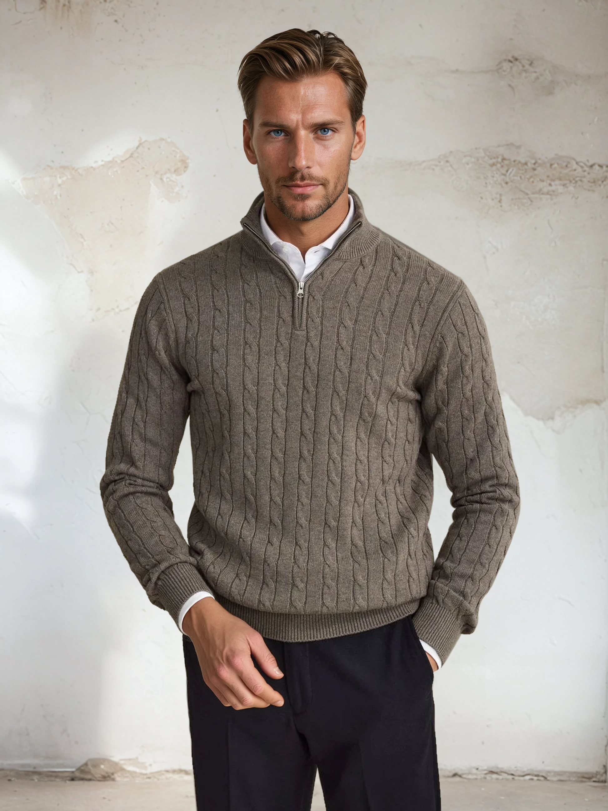 Pietro™ Luxe Cable Half-Zip – Gekabelde Sweater met Korte Halsrits
